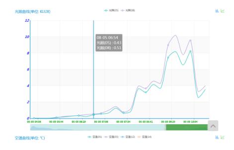 11、在線監(jiān)測各環(huán)境因素參數(shù)的表現(xiàn)形式:A、清單明細(xì)式,可以直觀地查看各個環(huán)境因素參數(shù)在某個時間點(diǎn)的監(jiān)測數(shù)據(jù)。B、曲線走勢圖顯示方式,C、立柱式走勢顯示等。