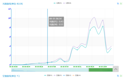 11、在線監(jiān)測(cè)各環(huán)境因素參數(shù)的表現(xiàn)形式:A、清單明細(xì)式,可以直觀地查看各個(gè)環(huán)境因素參數(shù)在某個(gè)時(shí)間點(diǎn)的監(jiān)測(cè)數(shù)據(jù)。B、曲線走勢(shì)圖顯示方式,C、立柱式走勢(shì)顯示等。