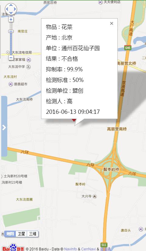 10、GIS地圖生成:利用檢測設備內(nèi)置的GPS模塊,實現(xiàn)衛(wèi)星定位數(shù)據(jù)捆綁測試數(shù)據(jù)信息,實施GIS地圖定點監(jiān)控每個檢測點的位置信息,監(jiān)測者可在其衛(wèi)星定位圖標上點擊位置坐標查看該檢測點測試數(shù)據(jù)相關索引信息。