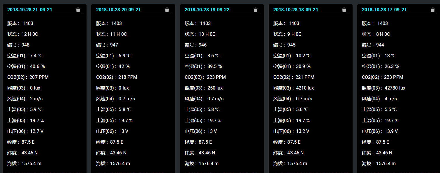 清單明細式顯示方式,可以直觀地查看各個環(huán)境因素參數(shù)在某個時間點的監(jiān)測數(shù)據(jù)。