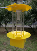 頻振式殺蟲(chóng)燈是利用害蟲(chóng)較強(qiáng)的趨光、趨波、趨色、趨性信息的特性,將光的波長(zhǎng)、波段、頻率設(shè)定在特定范圍,近距離用光,遠(yuǎn)距離用波加以色和味,引誘害蟲(chóng)撲燈,通過(guò)頻振式高壓電網(wǎng)將害蟲(chóng)擊暈或擊死,最后落入接蟲(chóng)袋內(nèi),達(dá)到殺滅害蟲(chóng)的目的。